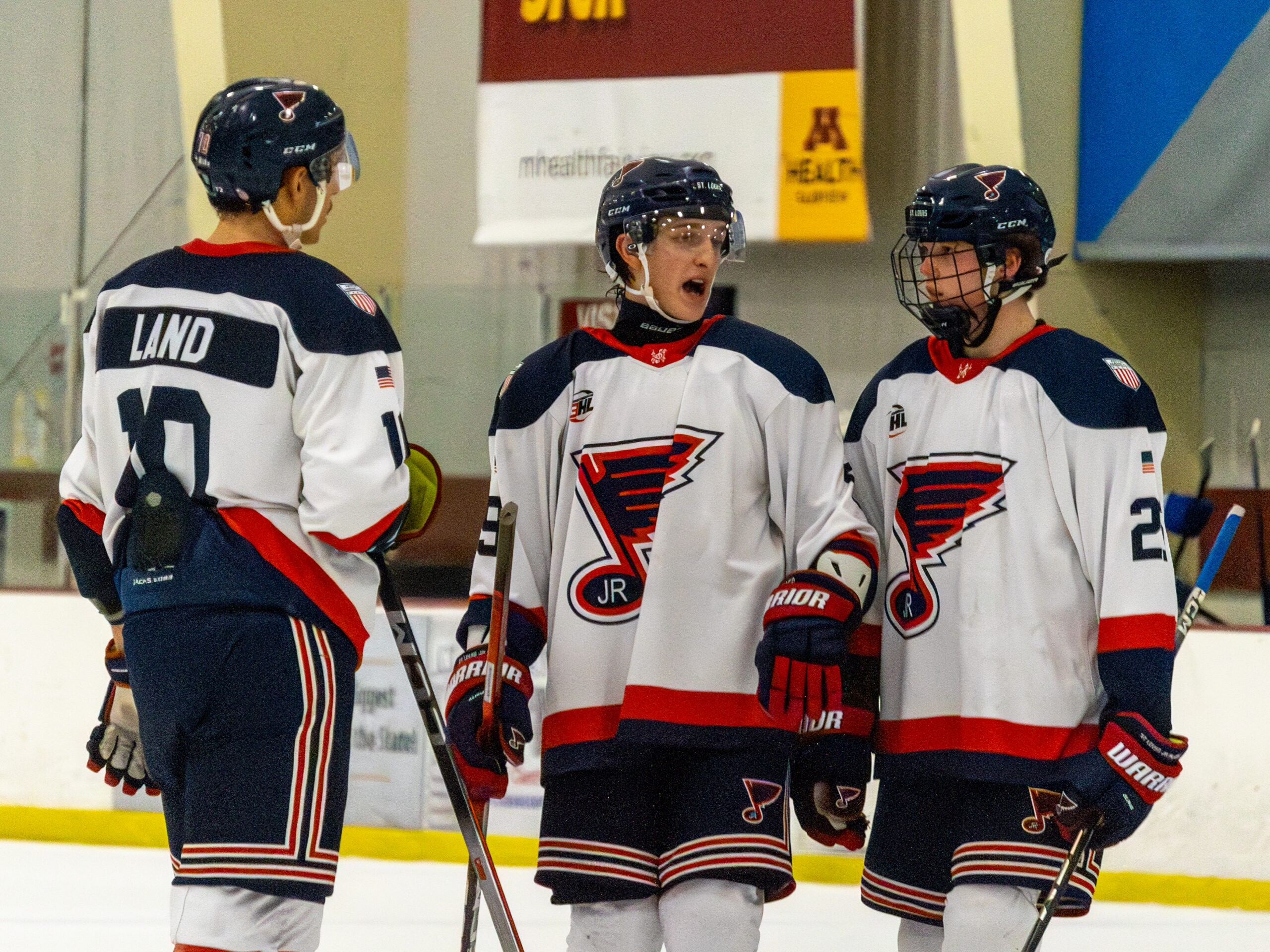 St. Louis 3 @ Helena 4 – The St. Louis Jr. Blues and Helena Bighorns squared off in a hard- fought contest that featured momentum swings throughout the whole game. St. Louis would strike first in the opening period, as Lonnie Land scored to give the Jr. Blues an early 1–0 lead and set the tone for a physical first frame. Helena responded in a big way during the second period, flipping the game in their favor with a surge of offense. Austin Uecker tied the game early in the period and then struck again to give the Bighorns their first lead of the night. Helena continued to apply pressure, and Braden Davis capitalized on the power play to extend the lead to 3–1 heading into the third period. The Bighorns added to their advantage in the final period when Austin Uecker completed the hat trick, pushing the score to 4–1. St. Louis refused to go quietly, mounting a late comeback attempt. August Feldker cut into the deficit, and Mitchell Nappier followed with another goal to bring the Jr. Blues within one. Despite the late push, Helena held strong defensively down the stretch. The final buzzer sounded with the Helena Bighorns securing the 4–3 victory after withstanding the Jr. Blues’ rally.